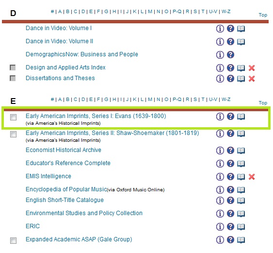 - Go to the Boston Public Library’s list of e-resources, scroll down to or search for “Early American Imprints,” and click on the link.